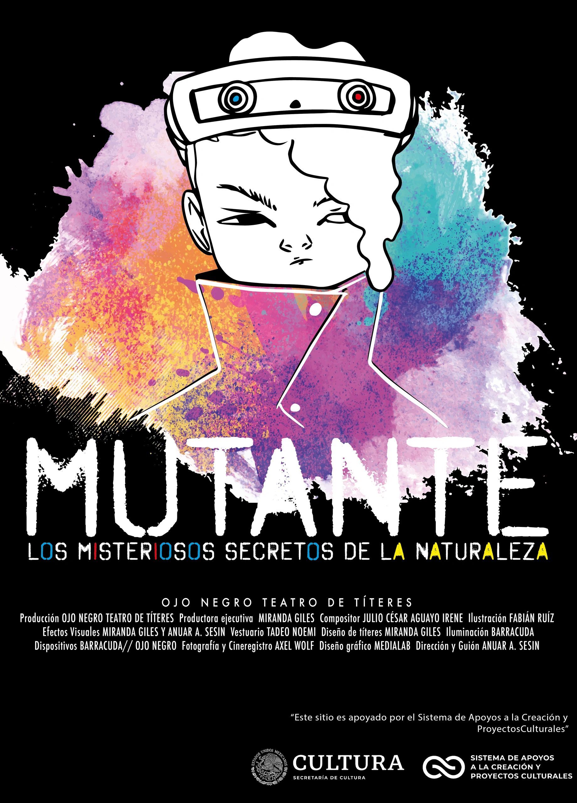 Mutante es una pieza híbrida que combina teatro de papel en miniatura, teatro de sombras, atmósferas envolventes, música experimental en vivo, para lograr que los espectadores se sumerjan en un viaje microscópico inesperado. Un aspecto fundamental de la puesta en escena es, que una cámara muestra cronológicamente y reproduce la imagen amplificada simultáneamente sobre una pantalla cada movimiento y animación del titiritero en secuencia, en tiempo real y de forma continua; es decir, en un plano secuencia, que comienza y termina mientras se desarrolla la pieza. Se muestra la mezcla de una sola realidad onírica: elipses temporales de los universos que cohabitan siendo parte de un todo. Los personajes en este micro universo, son representados gráficamente por ilustraciones en miniatura.